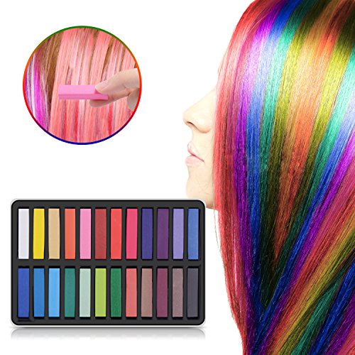 Ameauty Hair Chalk Set, 24 Hair Dye Colors Non-Toxic Washable Temporary Hair Chalk for Girls Kids Party Cosplay