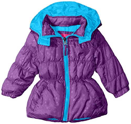 Puffer jacket in allover tonal heart print featuring exposed pop color front zipper and hood lining Cinched waist Side entry pockets Polyester fill Brand : Pink Platinum Item model num : PP64156 MPN(PartNumber) : PP64156 EAN : 0887310410640 Product Dimensions(LxWxH) :
