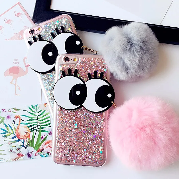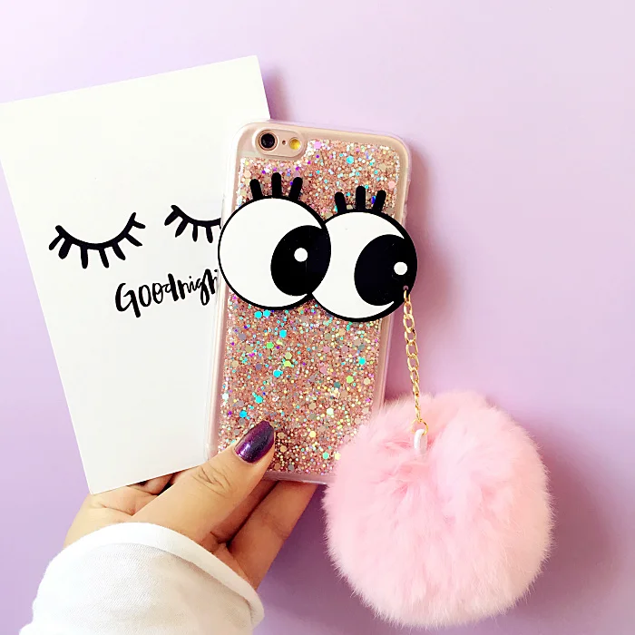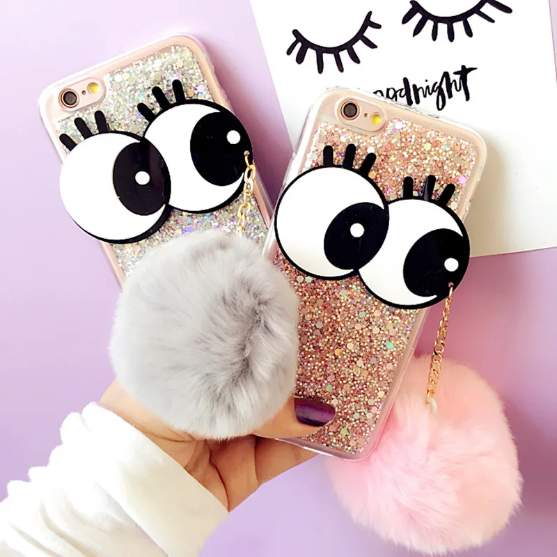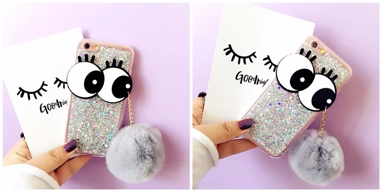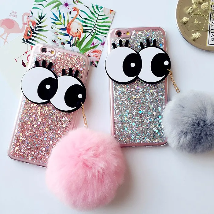 Feature Four:For pompom iphone 6 Glitter Powder Cases with Hair Fur Ball