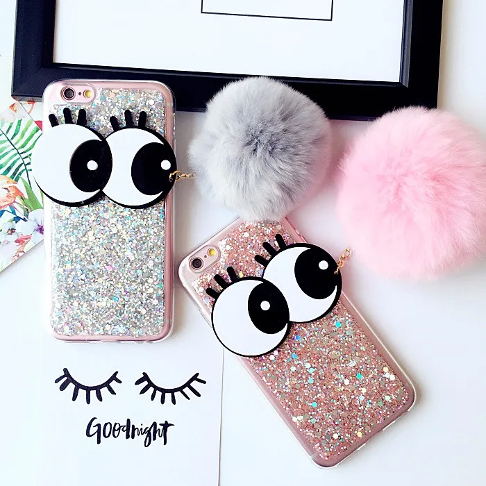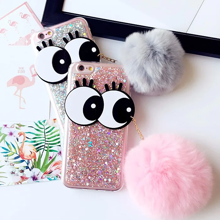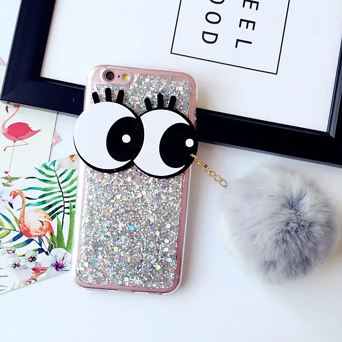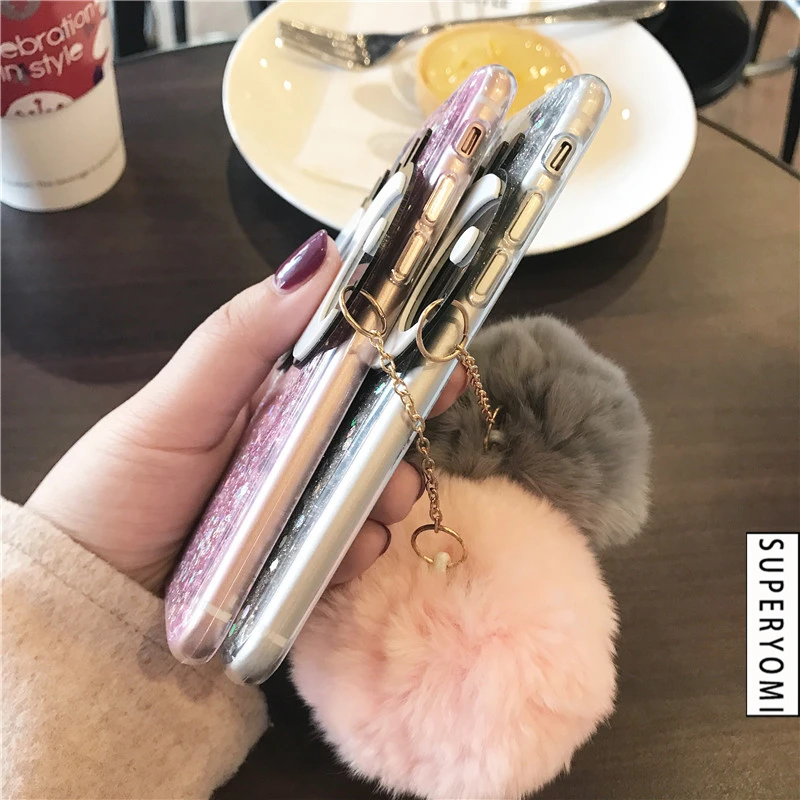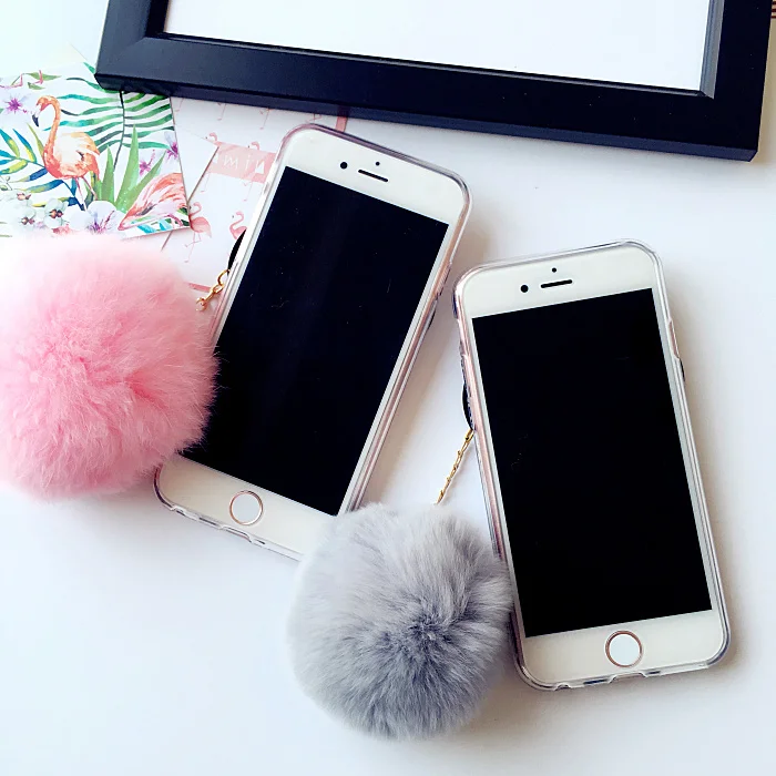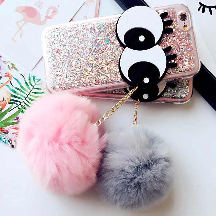 Feature One :bling glitter phone case With 3D Warm Fur Ball for iphone 7