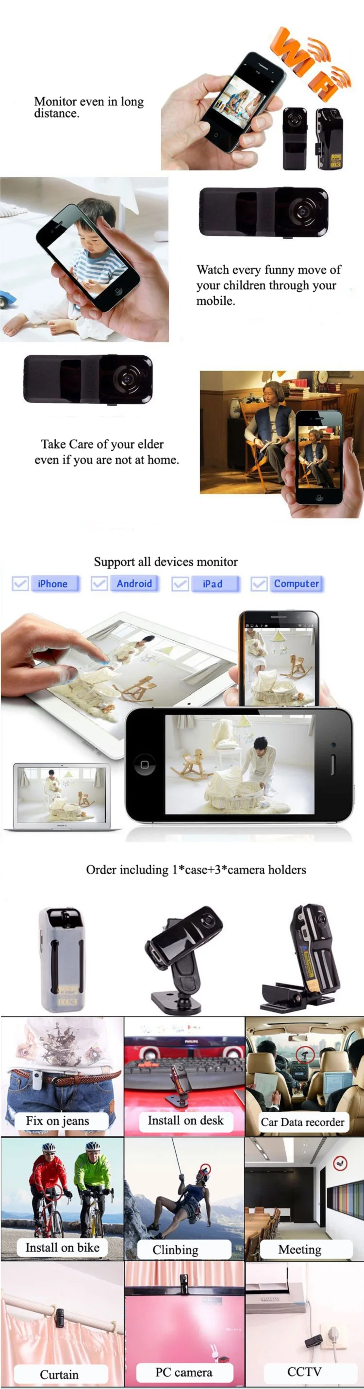 Usage Scenario:Sport Car Helmet Bike Nanny Action Security Monitor Camera