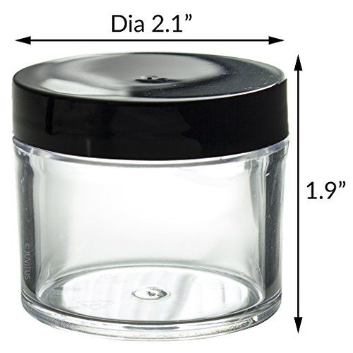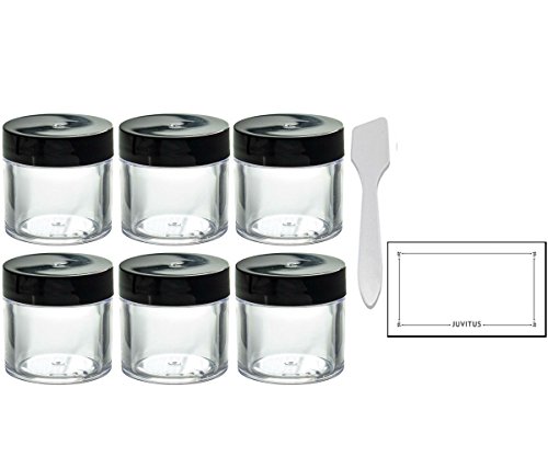 Clear Thick Wall Acrylic Travel Refillable Pot Container Jar - 2 oz / 60 ml (6 pack) + Spatulas and Labels for Samples, Balms, Makeup and Cosmetics, Salves, MADE IN USA