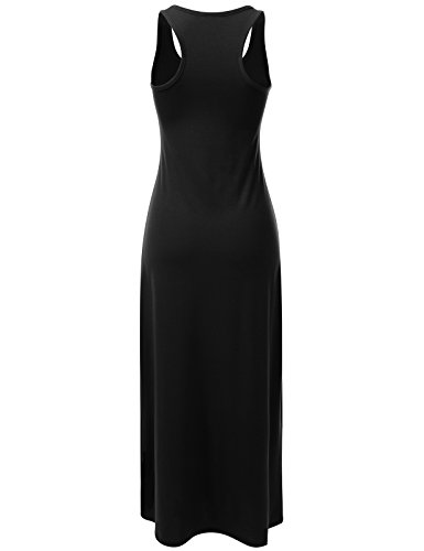 A knitted loose fit tank top featuring sleeveless cut, scoop neckline, racerback, and maxi length.