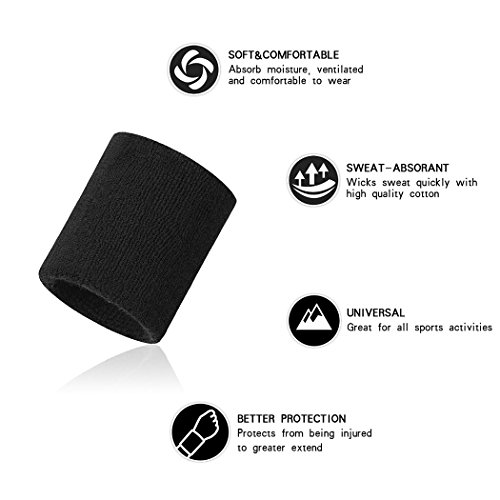 HOTER Premium Sports Thick Solid Color Wristbands, 4 Pieces(2 Pairs)