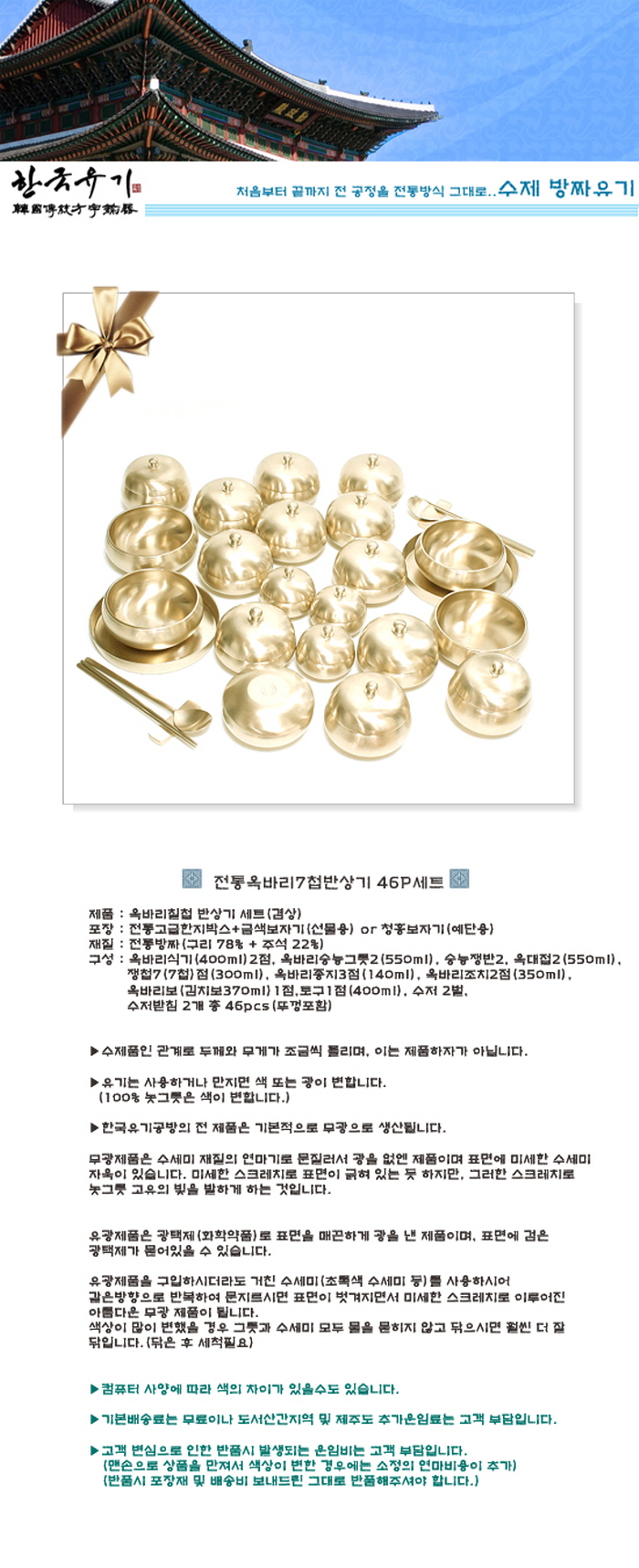 - 품명 및 모델명[한국유기-수제방짜유기] 전통옥바리7첩반상기 46P세트