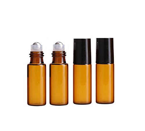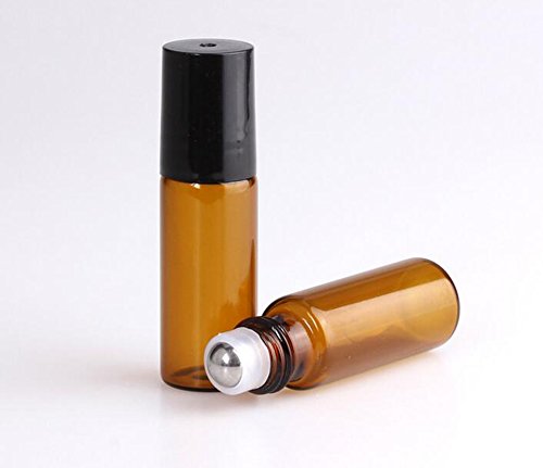 10 Pcs Set 5ml Multi Color Glass Perfume Roller Bottles Refillable Essential Oil Roll On Bottles Cosmetic Eye Cream Lotion Metal Roller Ball Bottles Vial (brown)