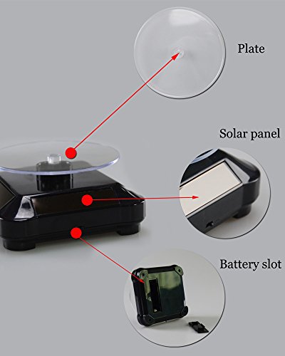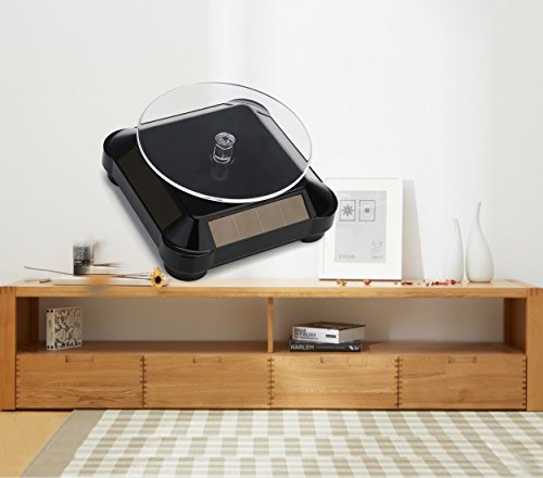 Solar Display Stand Turntable ,Battery Double Used Rotating Stand for Jewelry Watch holder, Hobby Collection Shelf Without Led Light Black