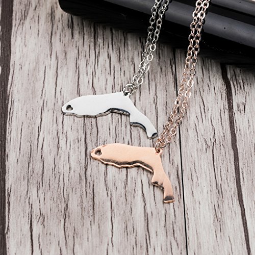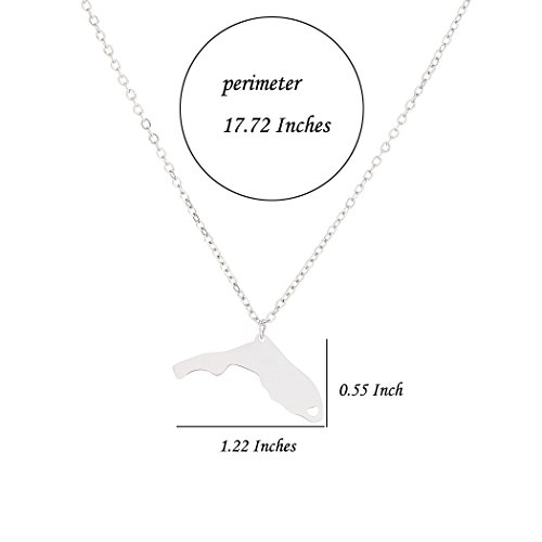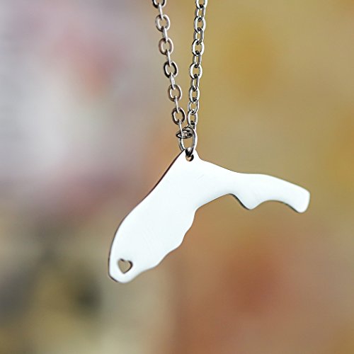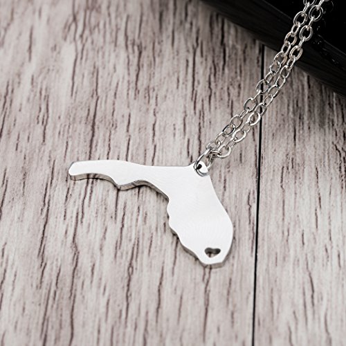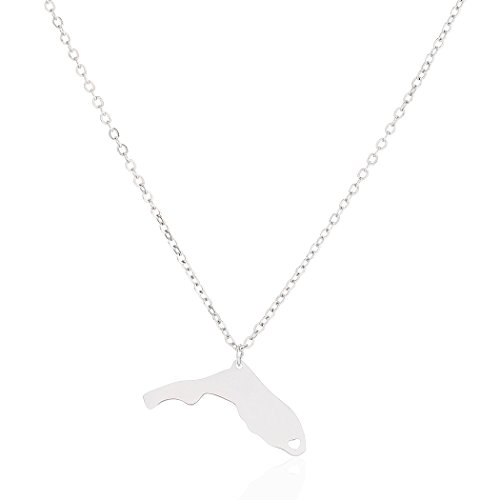 Artio Florida Necklace US Map Stainless Steel Pendant Necklace (Silver)