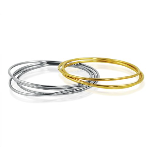 - Title : Set of Seven (7) Two Tone Ladies Stainless Steel Bangle Bracelets ( Gold and Silver Tone)