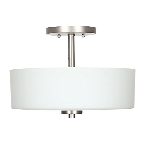 3-Light Brushed Nickel Semi-Flush Mount Light with White Shade