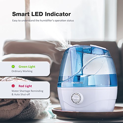Ideal Humidity, Increased Comfort With adjustable mist output up to 180ml/h, you can easily control the humidity level for maximum comfort. The cool mist helps prevents dry eye, scratchy nose and throat, offer sound sleep and reduce static electricity when it’s dry in the winter from the heat in the house.