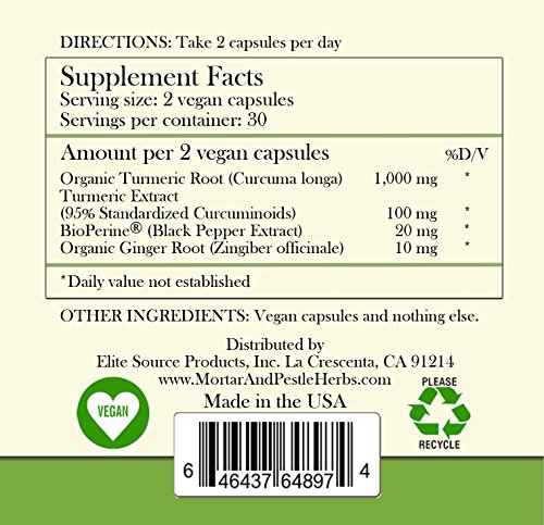 -. Title : Turmeric Curcumin Supplement Extra Strength with 1000mg Pure Organic Turmeric, 95% Standardized Curcumin Extract Plus BioPerine and Ginger for Absorption - 60 Vegan Capsules - Made in USA