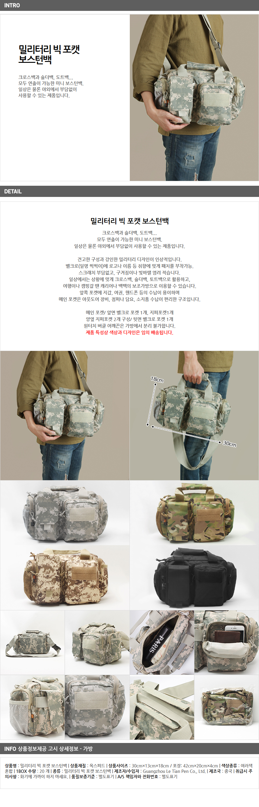 Big Pocket Outdoor Military Shoulder Bag Boston Bag Boston