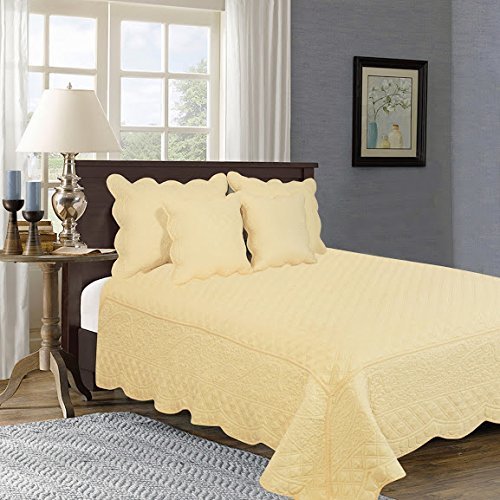 Tache Home Fashion YELLEMDES-King 5 Piece Quilted Yellow Buttercup Puffs Bedspread Set, King