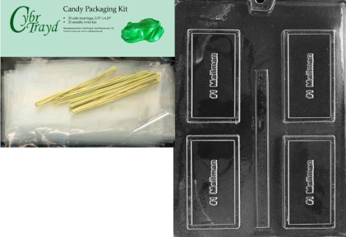 Cybrtrayd "No.1 Mailman" Business Card Chocolate Candy Mold with Packaging Bundle of 25 Cello Bags, 25 Gold Twist Ties and Chocolate Molding Instructions