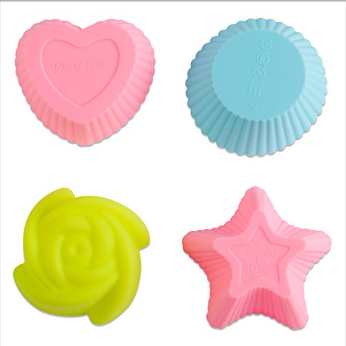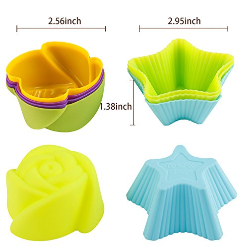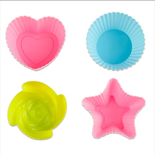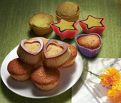 - Package included: 24pcs silicone cakecup lines; Four shape - round, heart, star, rose(6pcs heart-shaped, 6pcs round-shaped, 6pcs star-shaped, 6pcs rose-shaped ).