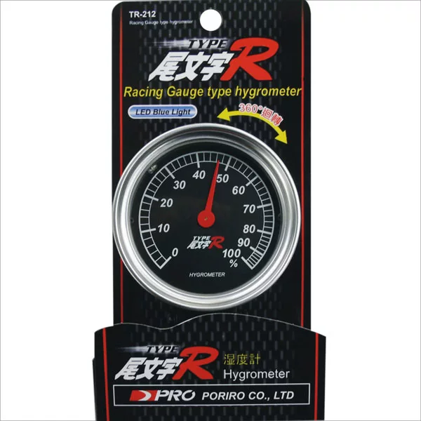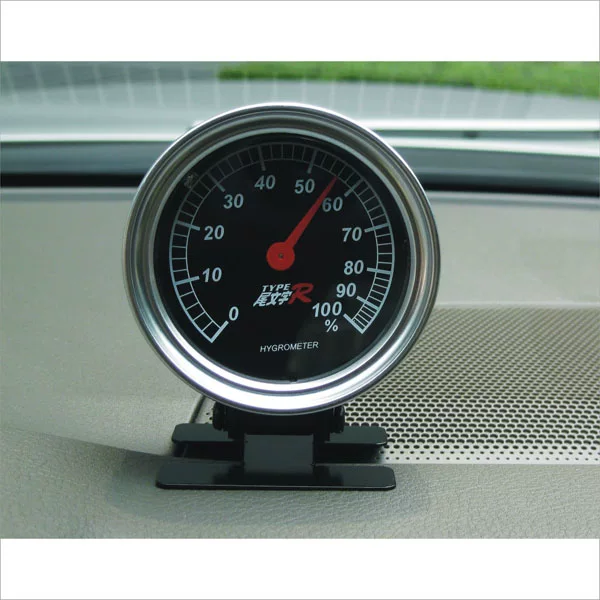 This product is full of fashion dynamic moisture meter, can be placed on the dashboard,pointer type display, display 0 - 100 humidity range. Before and after the angle can beadjusted freely, so even if the surface can be placed on any inclined easy reading. The top of the luminous lamp switch is pressed, the dial on the beautiful emits blue light, even ifdoes not turn on the lights inside the car can also have accurate humidity display.