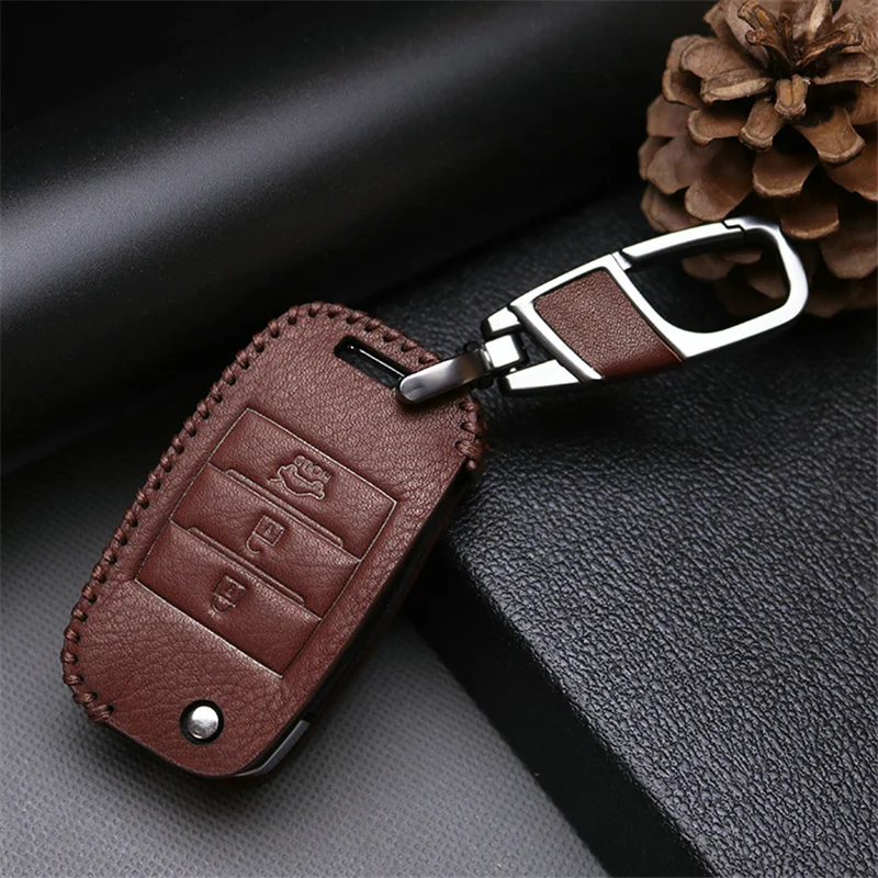 Type 7:Genuine Leather Remote Key Case+Zinc Alloy Leather key rings