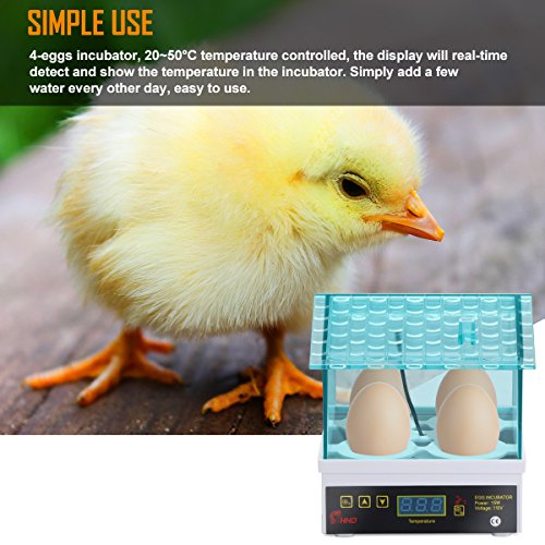 - SIMPLE TO USE: 4 eggs incubator, 20~50°C temperature controlled. Add a few water every other day. Easy to Clean.