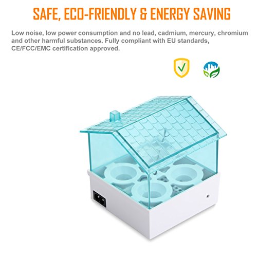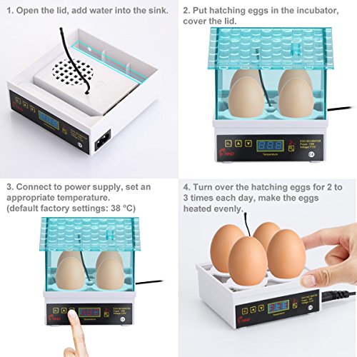 - COMPACT SIZE & WIDELY USE: Mini size, perfect for use in classroom and help children to learn about hatching knowledge. This egg incubator also can hatch chickens, ducks, quail, pigeon, etc.