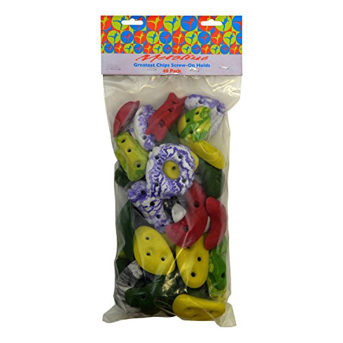 FEATURES of the Greatest Hits Screw-On Bouldering Hold Set - 40 Pack by Metolius Purchase larger quantities of holds at lower pricing Random selection of shapes within the given hold size Includes hardware Assortment of 40 Screw- On holds Screws are included
