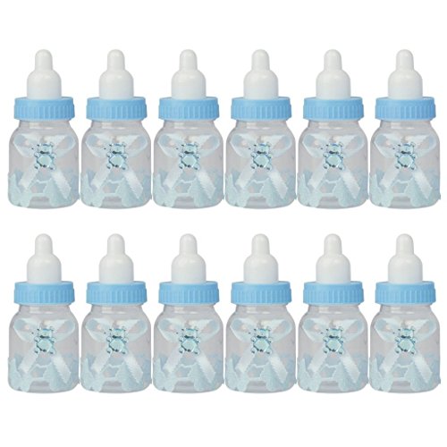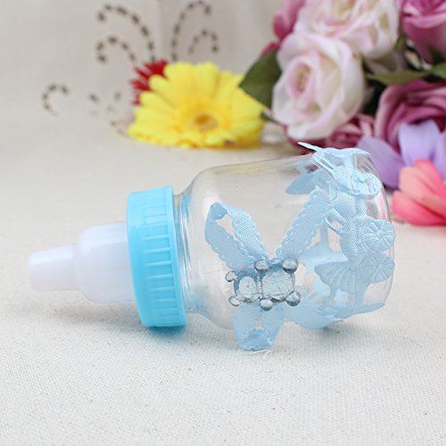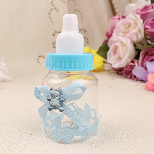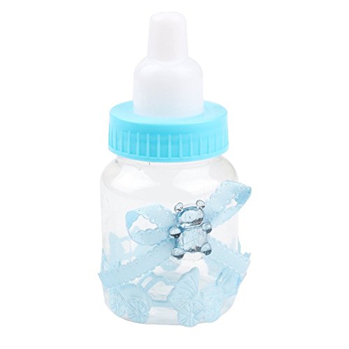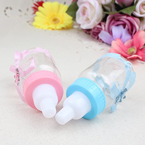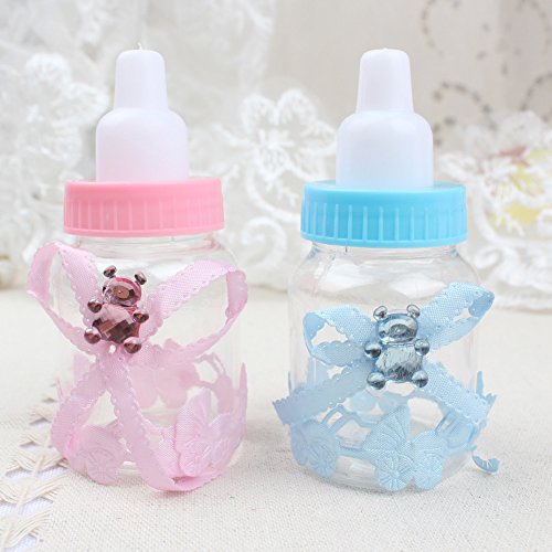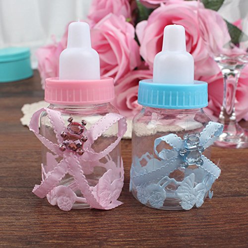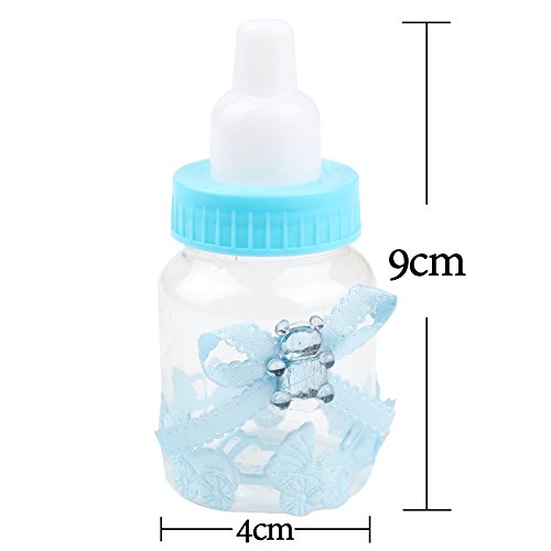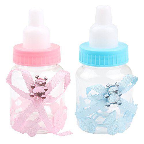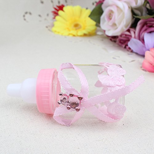 -. Feature : Dimensions: Height: 9cm/3.6inch, diameter: 4cm/1.6inch, material: Made of transparent and durable plastic, harmless and reusable. / Shape: Bottle, accessories stuck firmly, not easily fall off. / Elegant bowknot decorated with a shiny bear, full of childlike. / Baby stroller sticker, high-end, innovative and unique. / Adorable Small baby bottle design, perfect for baby shower, christening gift or candy box.