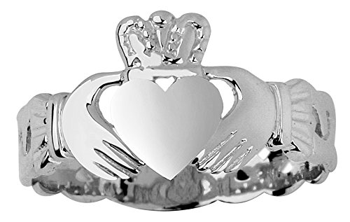 -. Binding : Jewelry -. Brand : Claddagh Rings -. Department : womens -. Feature : dainty Irish Claddagh ring with Celtic Trinity knot band motif crafted exclusively for women / carefully crafted with fine 10 karat white gold and perfect polished finish / comes with free special gift packaging / made in the USA yet offered at factory direct jewelry P.R.Ice / ships from the manufacturer directly to the customers -. Label : Claddagh Gold -. Manufacturer : Claddagh Gold -. Model : RGN1019WH -. ProductGroup : Jewelry -. ProductTypeName : FINERING -. Publisher : Claddagh Gold -. Studio : Claddagh Gold -. Title : 10K White Gold Women's Claddagh Ring