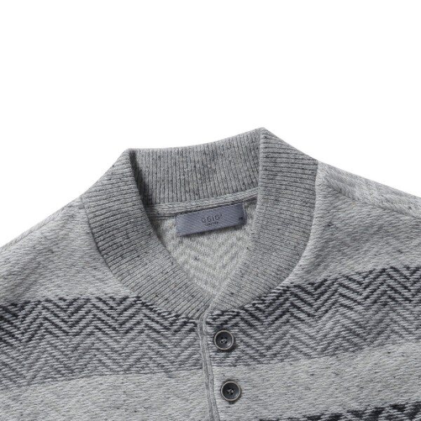 상단 배색의 지그재그 패턴으로 세련된 남성 니트.- 도톰한 두께감의 울혼방 소재로 보온성을 전해줌.- 스탠 카라 디자인에 반버튼 여밈으로 단정함.- 소매단,밑단의 RIB 조직으로 실루엣을 잡아줌.- 다양한 아이템과 세련된 맨즈 룩을 완성시켜줌