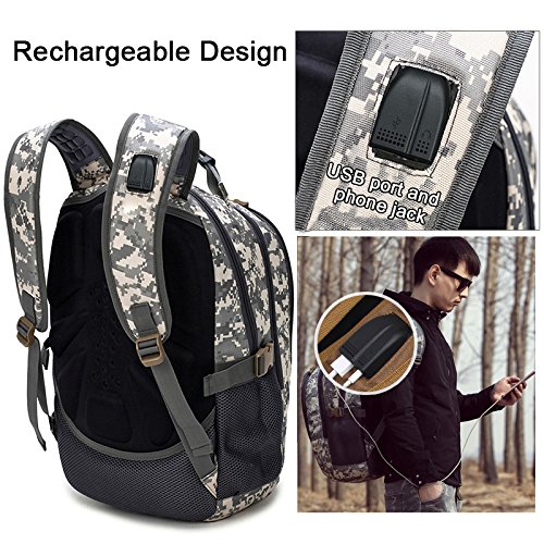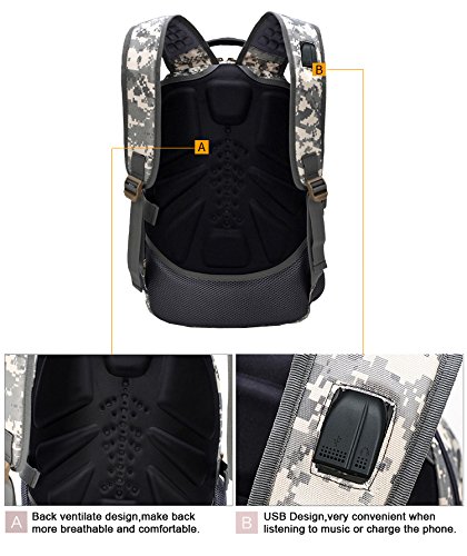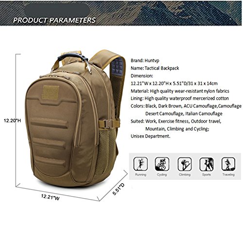 -. Title : Huntvp Military Tactical Backpack Rucksack Gear Assault Pack Student School Bag with USB Port