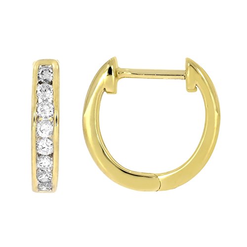 -. Title : 1/4 cttw 10k Solid Gold Round Cut White Diamond Ladies Dainty Hoop Earrings