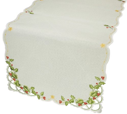 - Embroidered holly berries and leaves with hand rendered cutwork