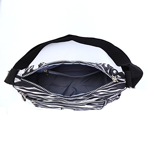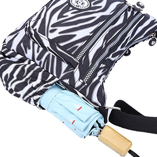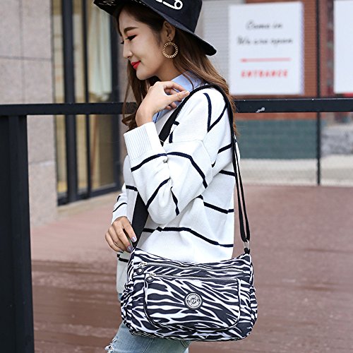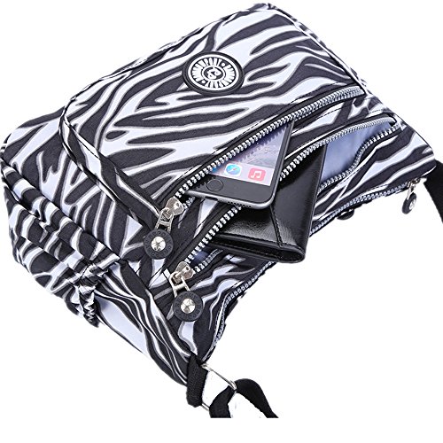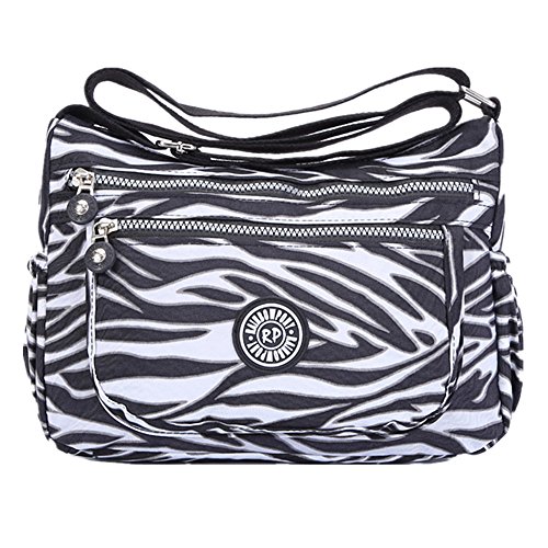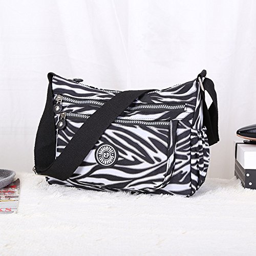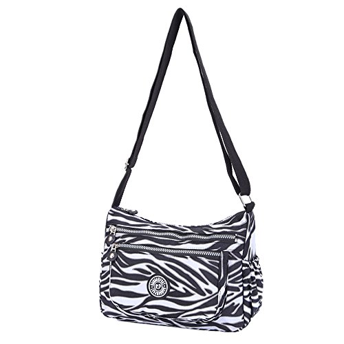 Material: Nylon Weight: 300g Function: handbag, shoulder bag and cross-body bag Internal structure: open pockets for iPad/camera, cell phone pocket, interlayer zipper pocket, pocket for cards, hidden zipper pocket Colors: Black / Navy Blue / Purple / Zebra Size: 27x 23x14cm (10.6" L x 9.1" H x 5.5"W)