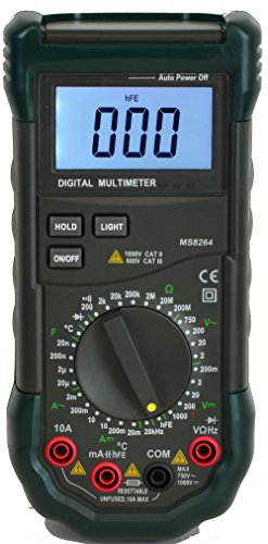 The newly released Mastech MS8268 is an auto/manual ranging digital multimeter. It is packed with many nice features such as sound and light warning for the jacks and back-lit LCD Screen. This meter powers on three AAA batteries. Accessories include test leads & user Manual