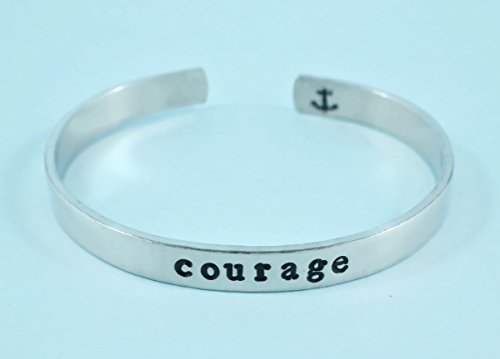 -. Title : courage - Cuff Bracelet, Hand Stamped, Shiny Pure Aluminum, Adjustable Bracelet, Newsprint Font