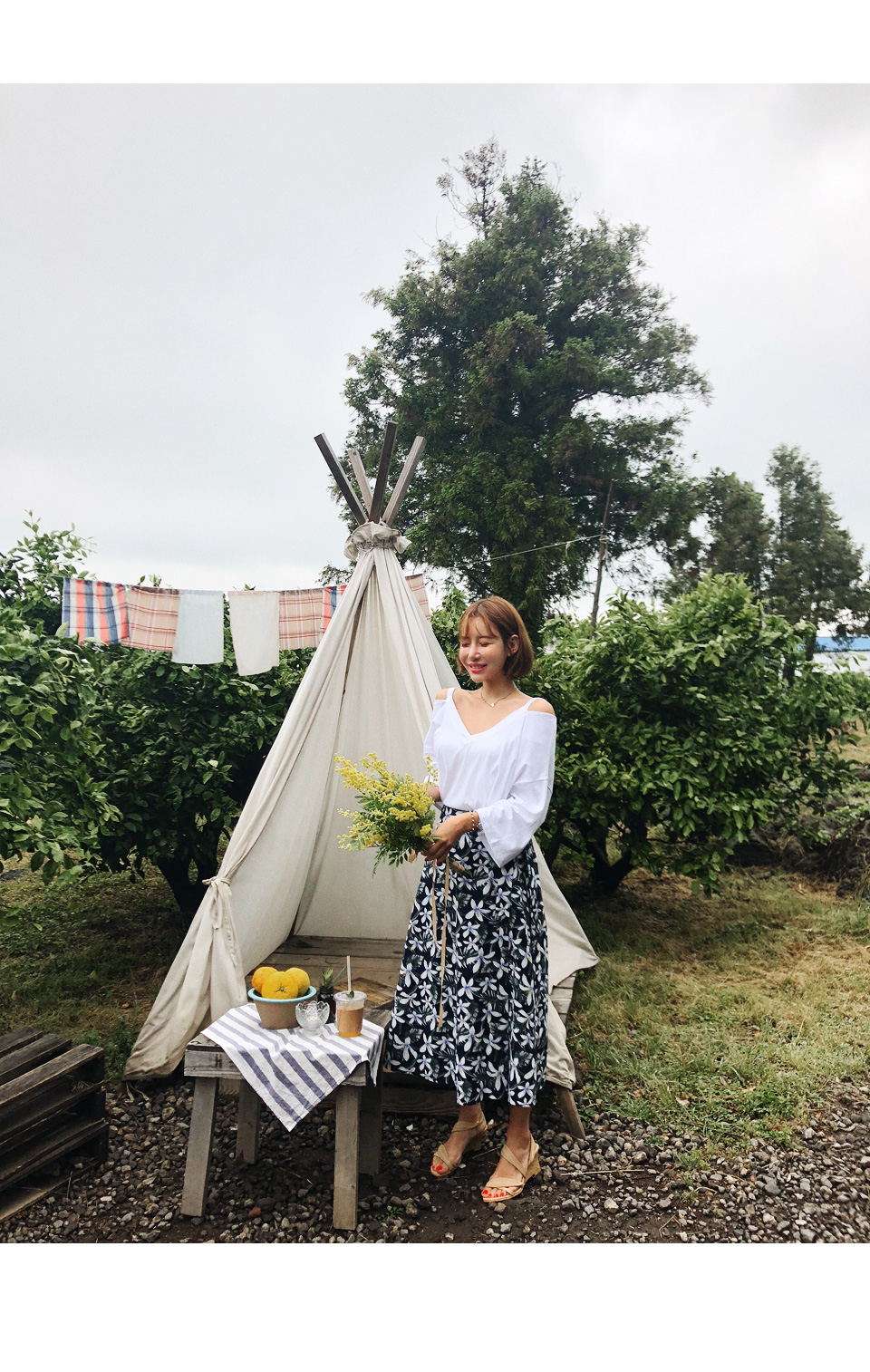 夏という季節感がぴったり合う開けたティーシャツ!