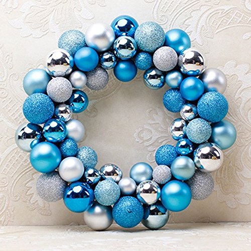 ARCCI 16 Inch Christmas Ball Wreath 56 Shatterproof Ornaments, Front Door Window Hanging Christmas Decorations Balls, (Silver/Blue)