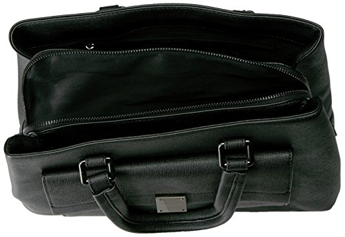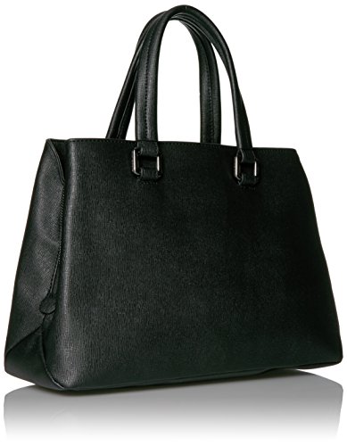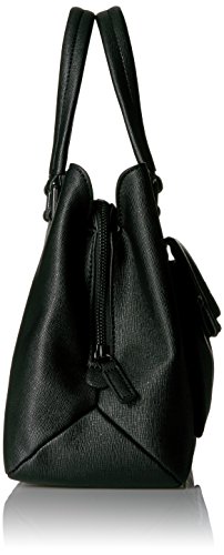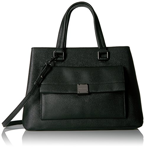 Top-handle satchel in faux leather featuring front pouch with logo plaque on flap