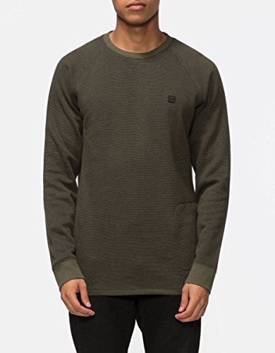 Product Description Our basic pullover crew neck sweatshirt. Features include a concealed side seam stash pocket with topstitch detail, rubber label, curved hem, and our signature Tavik contour back yoke. The alpha ii fleece is a super soft brushed 250gsm yarn dye striped fleece. 0