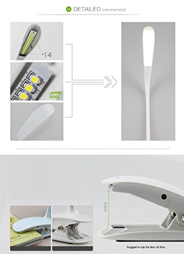 -. Feature : Multi-purpose - It can stand on desk with its own anti-skid base just like common lamps or can clip almost anywhere and any angle with its anti-skid clip. / Wireless and portable - It can be powered by built-in battery so it's wireless and portable. You can take it move around in your house or take it with you when travelling. / Elegant design - Flexible gooseneck tube to adjust its height and angle, 14 long life LEDs, ultra portable and lightweight / Easy to use - Touch-sensitive switch offers 3 brightness levels, recharges via USB to laptop/computer or outlet via recharges via adapter. / 100% KMT global Satisfaction Guarantee-we back up with 60 days warranty(defection,accidental damage, non-satisfaction).Suitable for every place - Can use in home, office, dorm, or travelling. Can use for reading, study, piano, bedside, and general light.