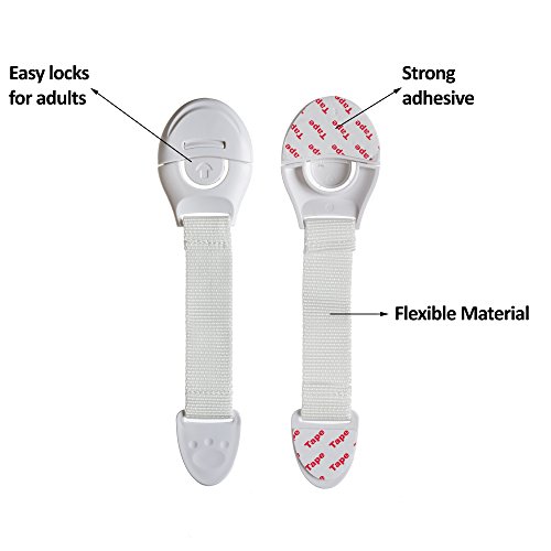 Baby Safety Locks By Minlano-Child Door Cabinets, Drawers, Toilet Seat, Fridge, Appliances, Cupboard, And Oven- Use 3m Adhesive With Adjustable Latch And Strap System -10 Packs White
