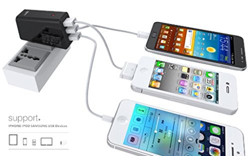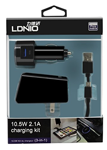 LDNIO Car Charger, And Three USB Port Wall Charger, Micro Chargers, USB Cable, USB Car Charger (Black)