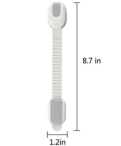- These safety cabinet straps are made to serve the person who uses them! Not only do they have adjustable length from 8.7’’ to 4.5’’, but they are also flexible to maximize their use. They work perfectly on both flat surfaces and round corners.