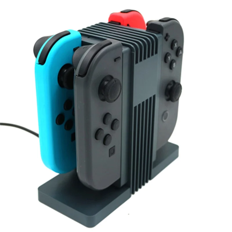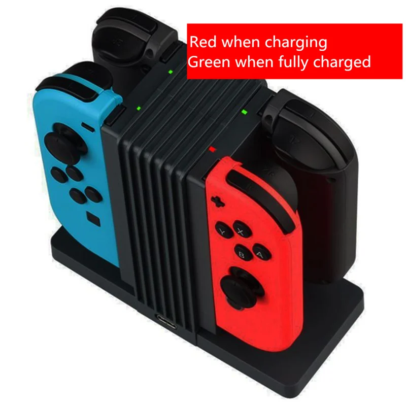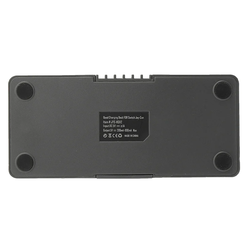 Specifications: Material: Plastic Input: DC 5V/-1A Output: 5V 200mA-800mA Powered via USB Easy slide-in design Up to 4 Joy-Con controllers for Nintendo Switch can be charged simultaneously Designed for nintendo switch joy-Cons Additional type c cable・ Powered via USB・ put your Joy-Cons into the charge dock・ and plug it into any USB port・ then it will charge Individual LEDs indicate the charge status for each Joy-Con. Red when charging and green when fully charged Full charge to 4 controllers simultaneously within 3 hours Keep your devices fully charged organized and ready for action Low-profile design ideal for all entertainment centers・ which can be used as a storage dock when not in use When faced with overcharge・ over discharged or short circuit・ the intelligent circuit can automatically cut off the power for safety