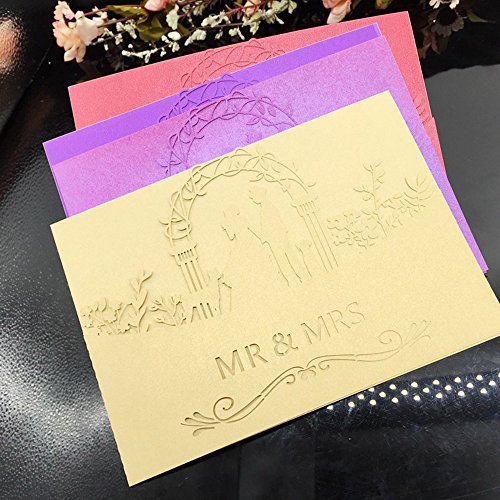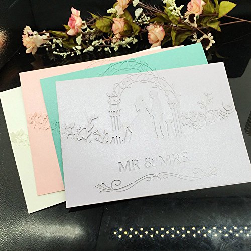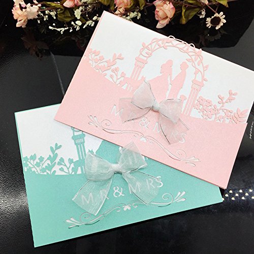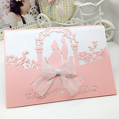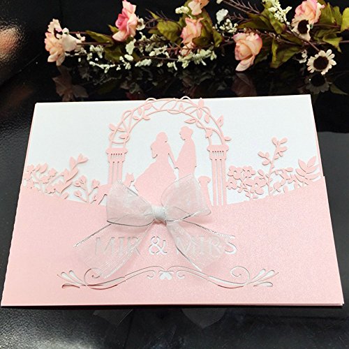 WOMHOPE® 50 Pcs - Mr & Mrs Wedding Invitation Hollow Laser Cut Lace Shimmer Party Invitations Cards Birthday Invitations Cards Wedding Favors (Pink...