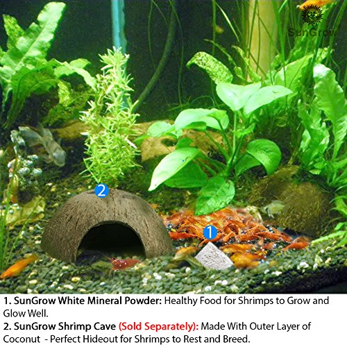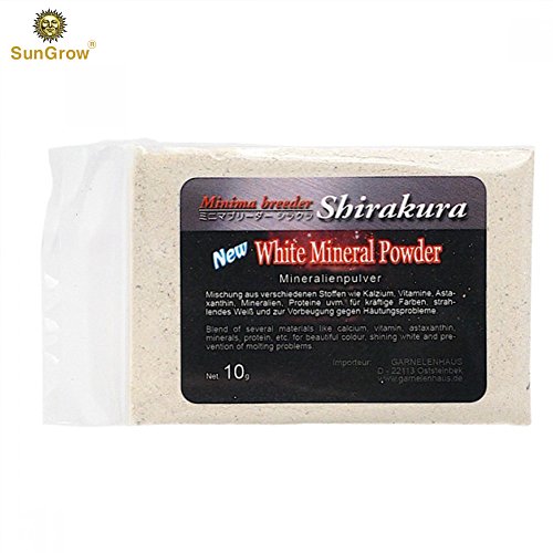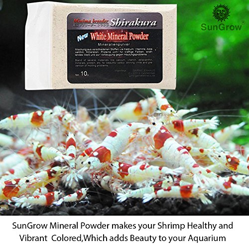- ✔WITH VITAMINS AND MINERALS THAT BOOSTS HEALTH --- SunGrow Shirakura White Mineral Powder provides the perfect nutrient balance for vitality, color and health, especially for baby shrimps in growing age. It improves activity of shrimps, bacteria, and microorganisms and plants. Sufficient minerals in water will give colors to shrimps. Use this with your baby shrimps from the very beginning in sufficient quantity to get your shrimp to develop bright color as they age.