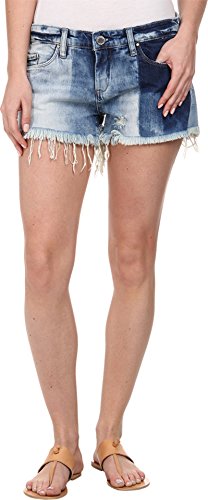 Denim shorts feature a retro high rise and mini length. Heavily frayed cut-off hem. Val-Party is uniquely bleach and acid washed for a multi-hued, colorblock indigo look. Leather brand patch at back waist. Inset rivet detail at back left pocket. Five-pocket design. Belt-loop waistband. Zip fly and button closure. 98% cotton, 2% spandex. Machine wash and tumble dry. Imported.