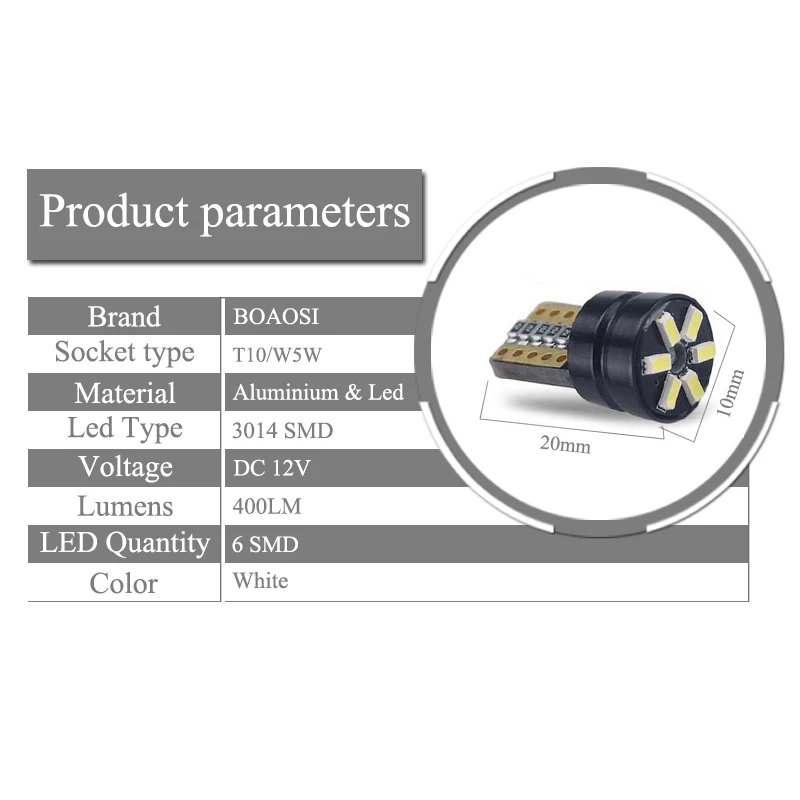 Feature 2 :Canbus led, error free led canbus, t10 w5w 168 194