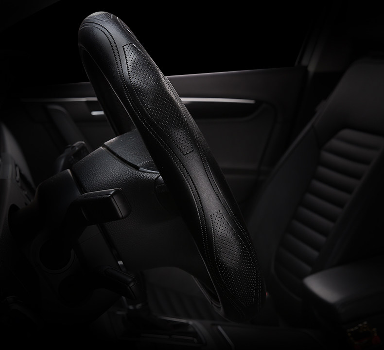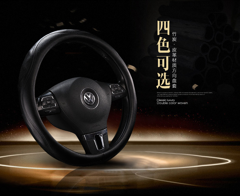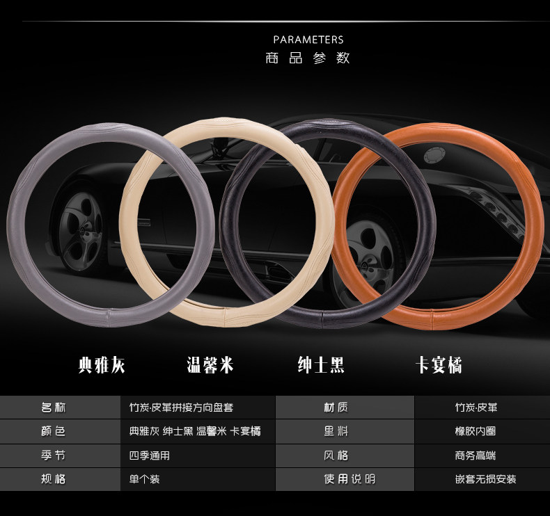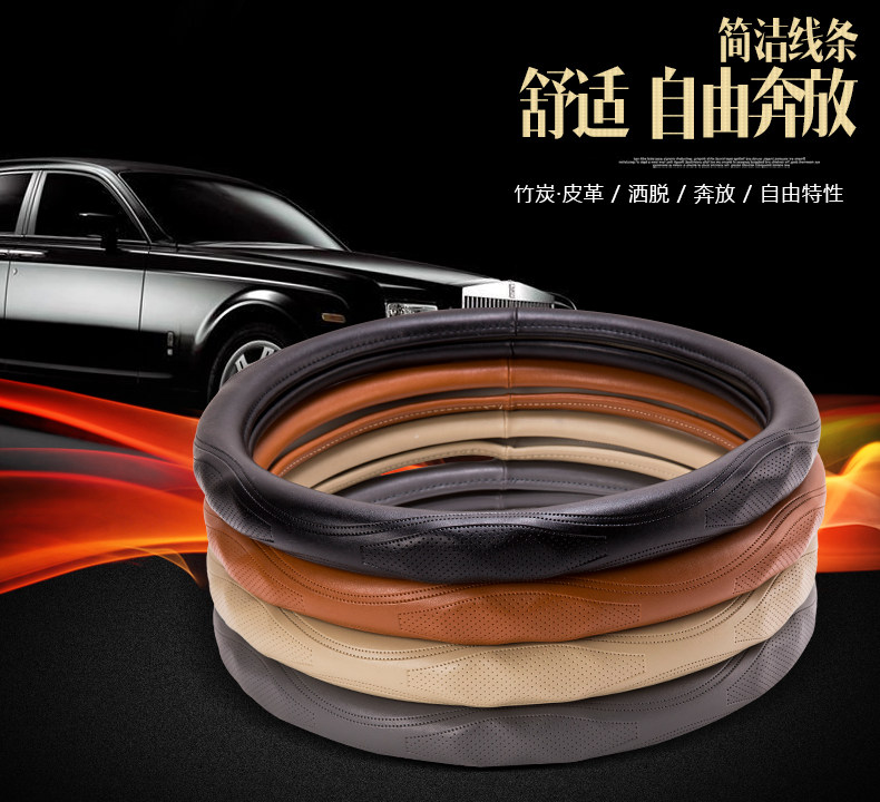 新款汽车方向盘套四季通用竹炭皮革把套运动时尚舒适透气方向盘套