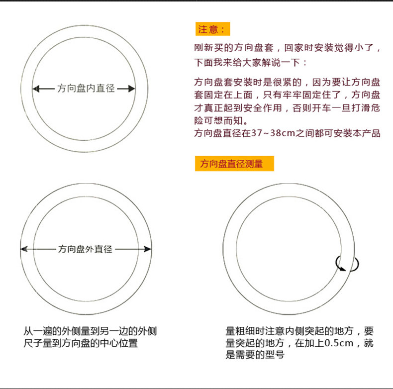 我们这方向盘套默认是中号:37-38你的车型不在这之中请拍下后留言车型,我们会根据你的车型安排发尺寸
