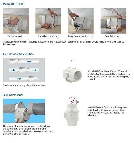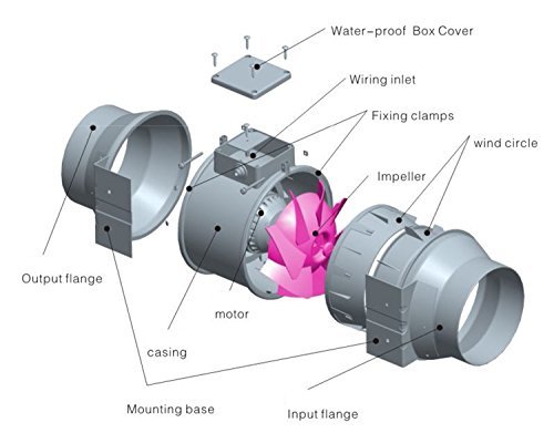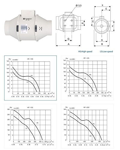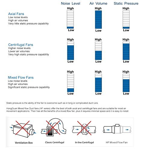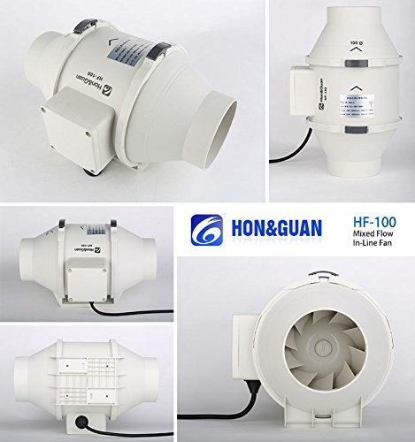 Hon&Guan 4 Inch Inline Duct Fan Exhaust Fan Mixed Flow Inline Fan Hydroponic Air Blower for Home Ventilation Bathroom Vent and Grow Room Ventilation Powerful & Silent Inline Fan 116 CFM (P series)